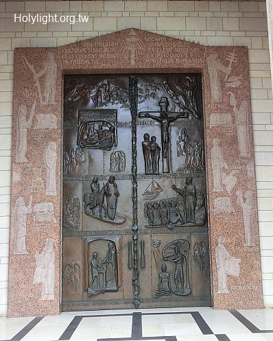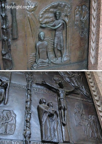 拿撒勒 Nazareth,報喜堂銅門上耶穌受浸及釘十字架的畫像(Front Door of the Basilica of Annunciation)