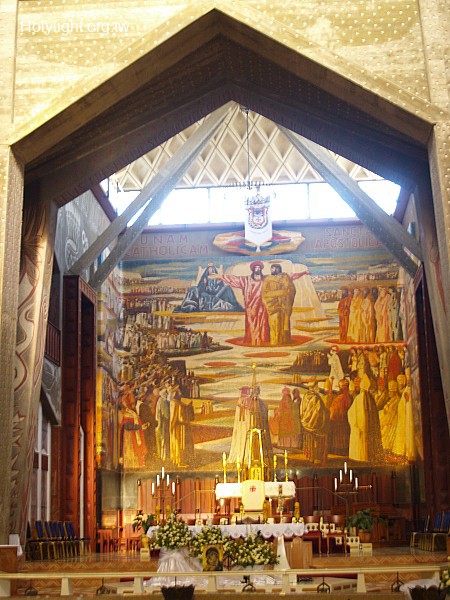 拿撒勒 Nazareth,報喜堂上層大堂的祭壇與壁畫(Alter of the Basilica of Annunciation )