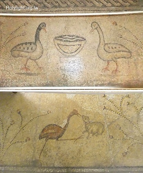 塔加 Tabgha:五餅二魚堂古代雀鳥的馬賽克(Mosaics in the Church of the Multiplication)