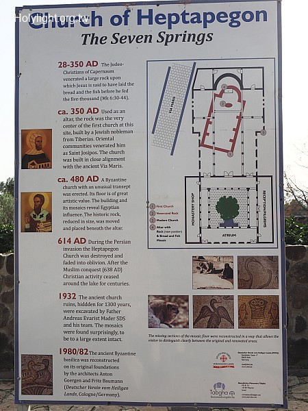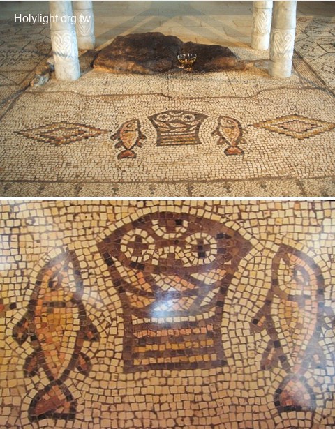 塔加 Tabgha:五餅二魚堂又稱七泉堂(Church of the Multiplication of the Loaves and Fishes or Church of Heptapegon )