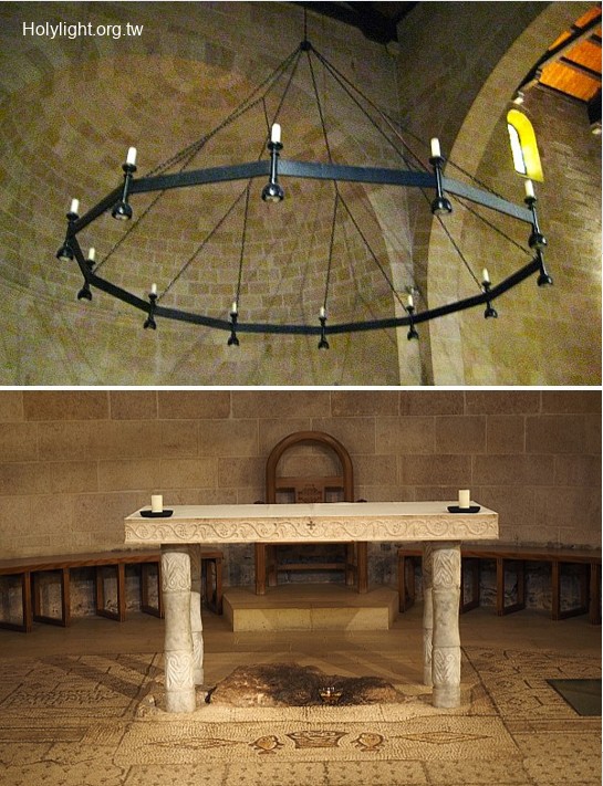 塔加 Tabgha:五餅二魚堂內的吊燈及祭壇(Chandelier and Altar in the Church of the Multiplication)