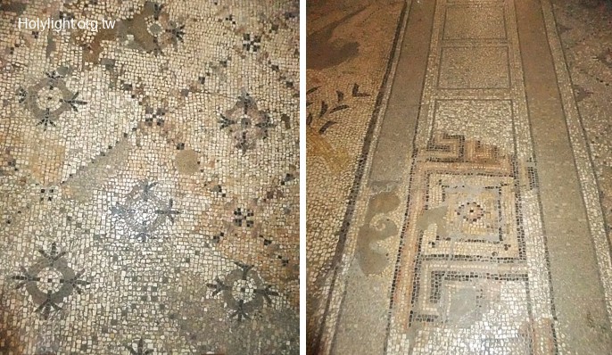 塔加 Tabgha:五餅二魚堂內古代的地板馬賽克(Floor Mosaic in the Church of the Multiplication)
