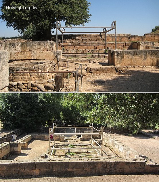 帖爾但 Tel Dan, 邱壇背後有一梯階的高台,為放置金牛犢之處(Steps of Podium of Israelite High Place)
