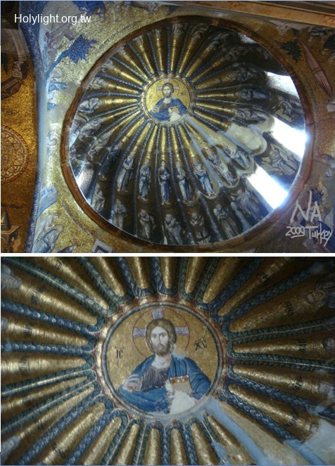 伊斯坦堡科拉教堂 Chora Church, 外前廊門楣上的馬賽克"全能基督"( Mosaic " Christ Pantokrator")