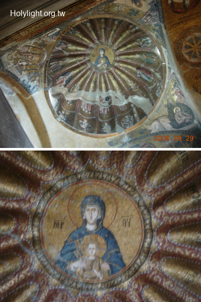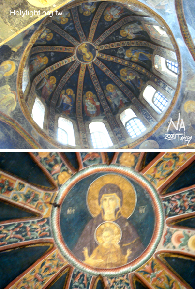 伊斯坦堡科拉教堂 Chora Church, 旁殿穹頂的濕壁畫"馬利亞與聖子"(Dome Fresco "Virgin and Child with Angels")