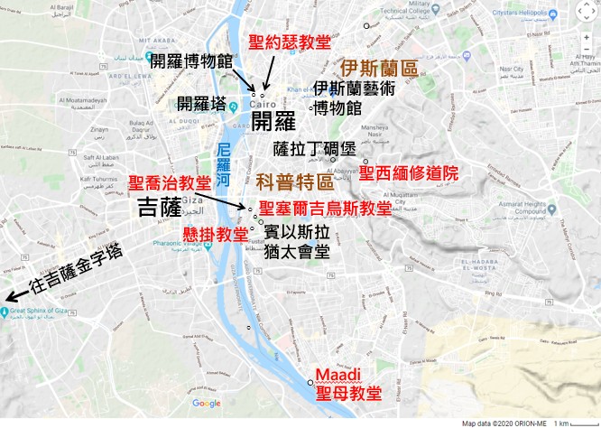 開羅Cairo , 可分市中心區,伊斯蘭區及舊開羅區(包括科普特區 Coptic Cairo)等區