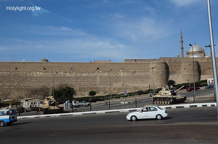 開羅 Cairo , 薩拉丁城堡(Saladin Citadel),鄂圖曼時代的塔樓,參訪時正值2011年「埃及革命」時刻,可見坦克佈防