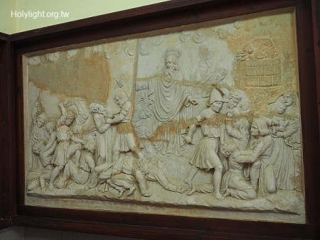 迦密山 Mt. Carmel, 迦密會修道院,以利亞下令眾人捉拿巴力先知的浮雕(王上18:40)(Relief Depicts the Seizing of Baal Prophets)