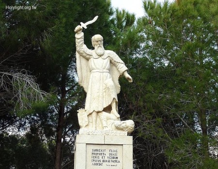迦密山 Mt. Carmel, 迦密會修道院,紀念以利亞戰勝巴力先知的雕像( Statue of Elijah at Muhraqa Carmelite Monastery)