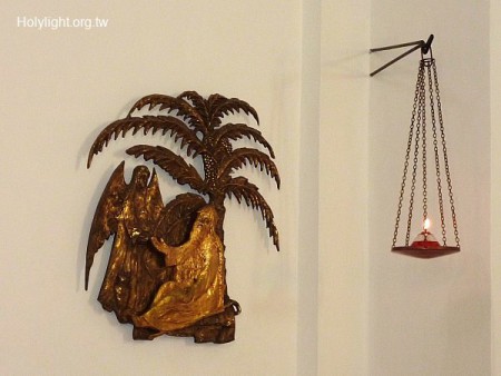 迦密山 Mt. Carmel, 迦密會修道院小教堂內有關以利亞的浮雕( Metal Sculpture on the wall of Muhraqa Carmelite Monastery)
