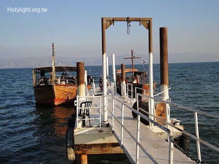 吉諾薩 Ginosar, 阿隆文化中心的湖邊有環湖遊覽船的碼頭 ( Quay near Yigal Allon Center)