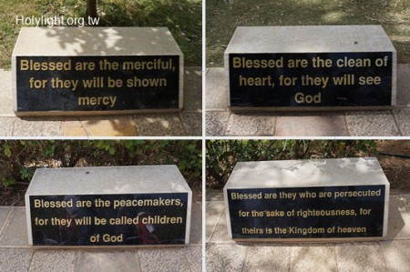 八福山 Mt. of the Beatitudes,八福堂花園路旁有八福經文的石刻(Stones with Bible Verses on Roadside of the Church)