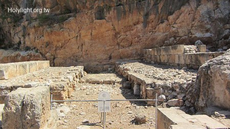 該撒利亞腓立比 Caesarea Philippi,石柱後面的群羊祭牲墓遺蹟(Tomb Temple of the Sacred Goats)