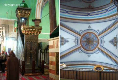 希伯崙 Hebron 列祖墓(Tomb of Patriarchs),清真寺的講壇(Minbar, 左)及十字軍蓋的天花板(Ceiling,右)