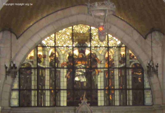 悲苦路Via Dolorosa第2站:鞭刑堂有關耶穌被鞭打的琉璃畫像(約19:1 )。