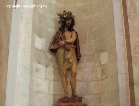 悲苦路Via Dolorosa第2站:定罪堂, 耶穌戴荊棘冕的雕像(約19:2)