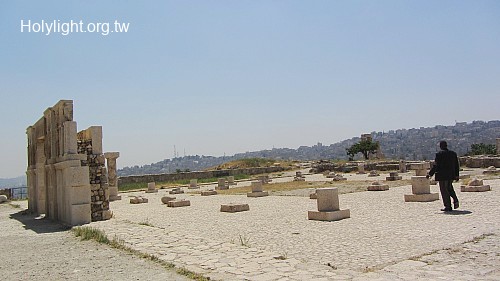 標題 : 安曼城堡山 Amman Citadel, 姆美野時代的清真寺遺蹟,包括圓柱支撐的建築及中庭(Umayyad Mosque)
