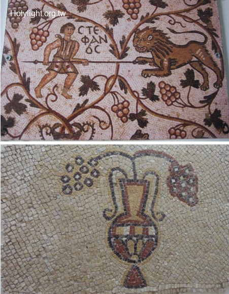標題 : 尼波山 Mt. Nebo, 解說中心內有關狩獵及花卉的馬賽克(Mosaics in the Interpretation Center )