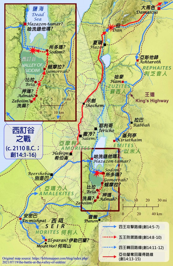 [節譯自Bible Mapper Altas Maps:The Battle at the Valley of Siddim, by David P. Barrett, July 19, 2021 ]